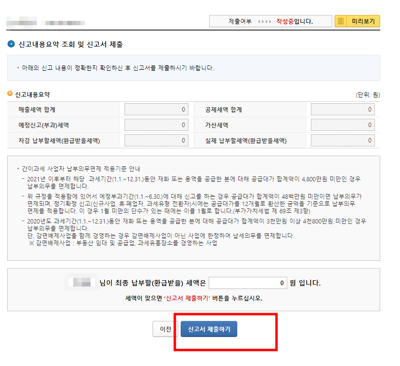 간이사업자의 경우는 1년에 딱 한번만 하면 됩니다.