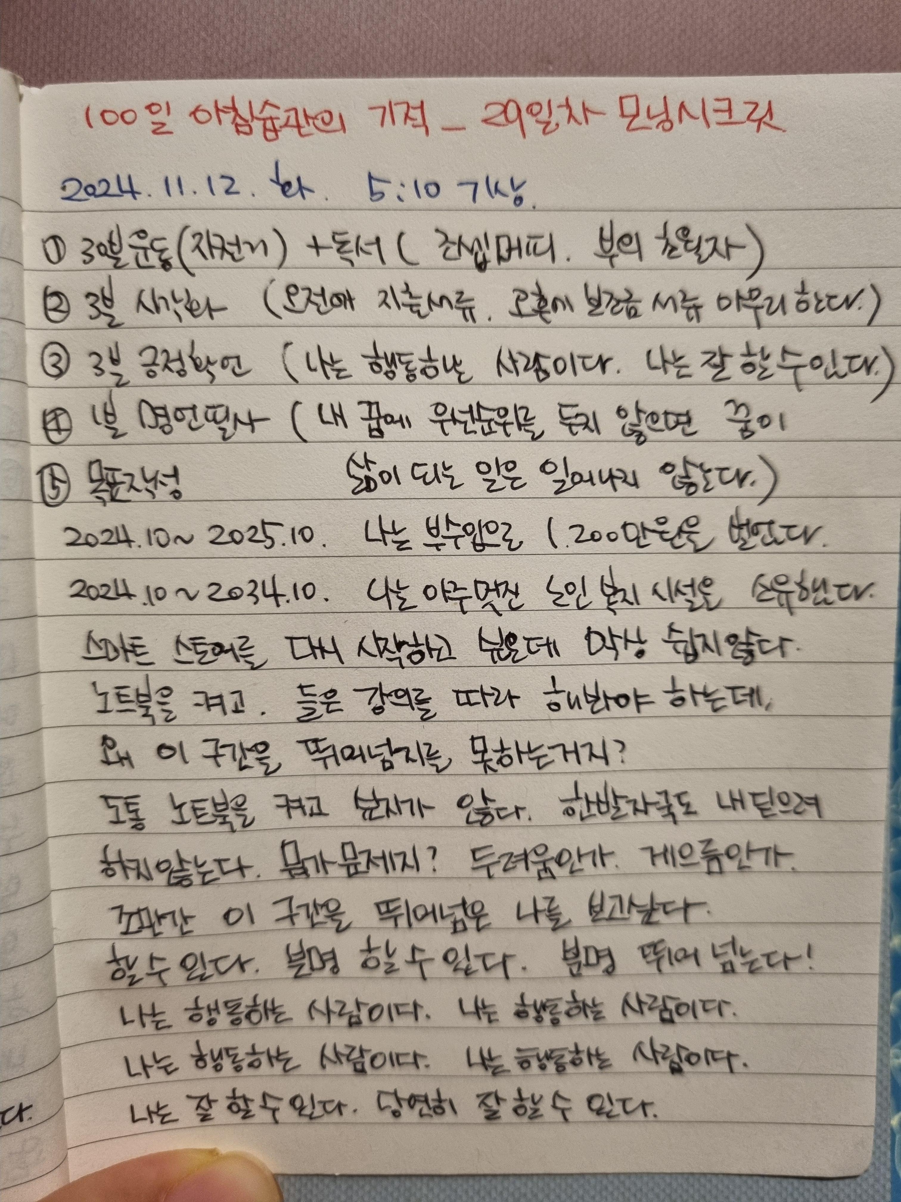 나는 100일 아침 습관에 기적을 알아가고 있다.